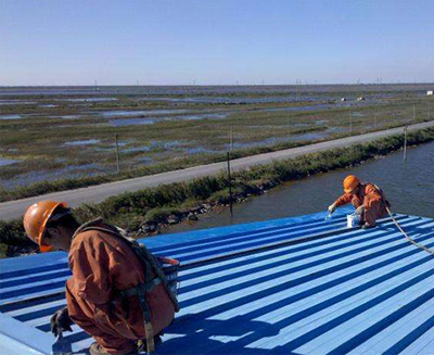 在柔性材料的施工過程中,卷材直接與屋面結(jié)構(gòu)板上的找平層直接結(jié)合,達(dá)到防水效果,有色柔性材料通常用于外墻,防水效果中等,具有裝飾效果。